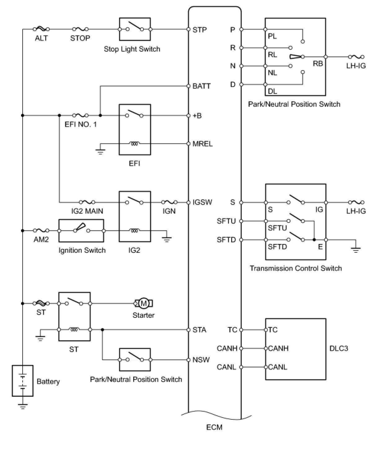 A750E AUTOMATIC TRANSMISSION: AUTOMATIC TRANSMISSION SYSTEM (for 1GR-FE): SYSTEM DIAGRAM