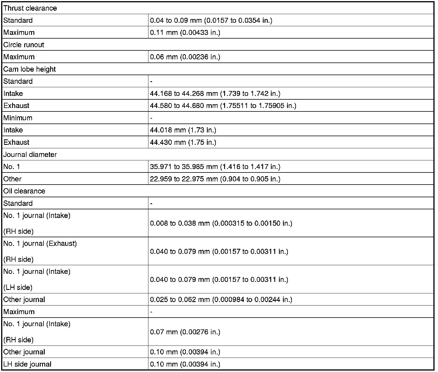 SERVICE SPECIFICATIONS: 1GR-FE ENGINE MECHANICAL: SERVICE DATA