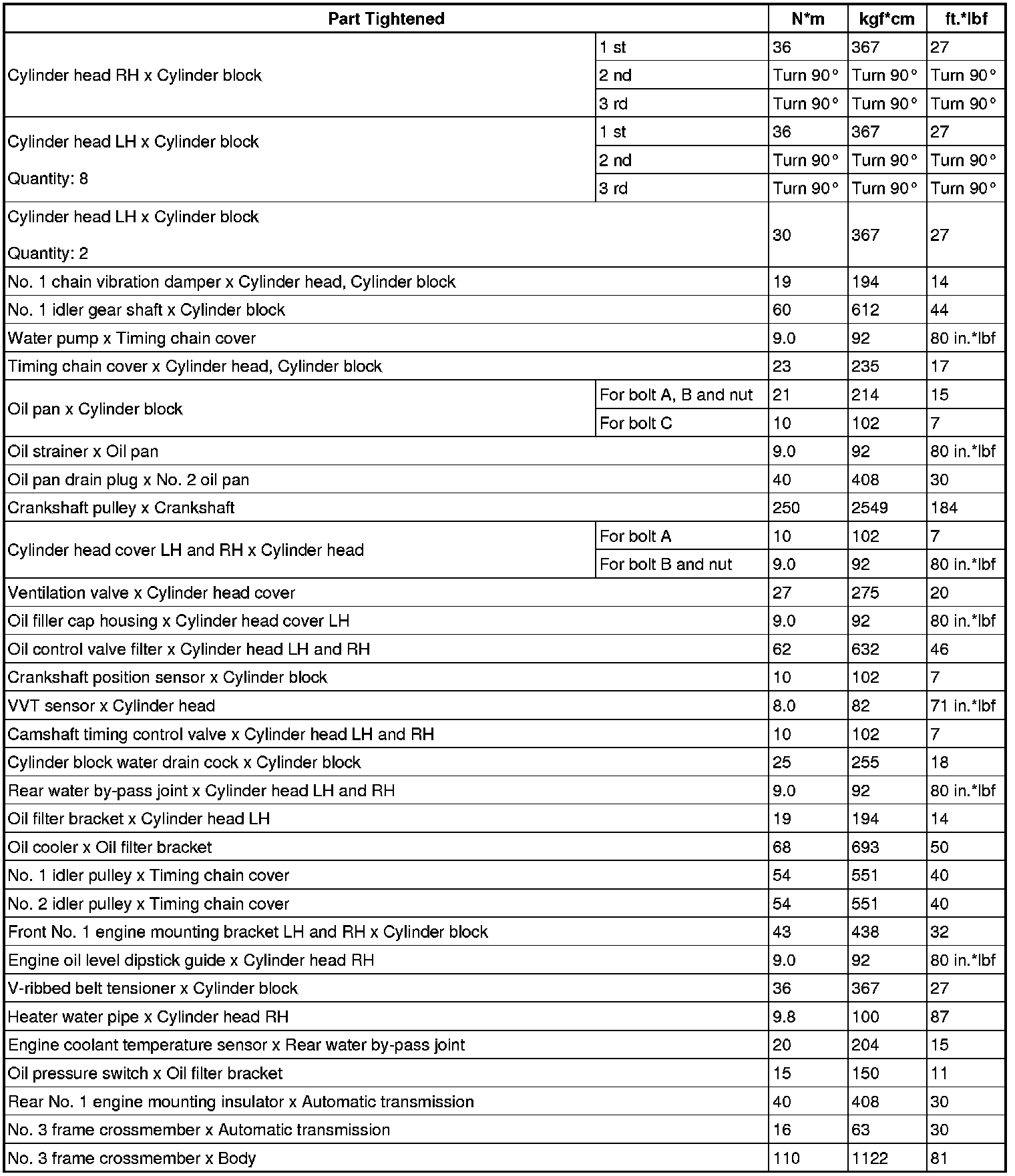 SERVICE SPECIFICATIONS: 1GR-FE ENGINE MECHANICAL: TORQUE SPECIFICATIONS