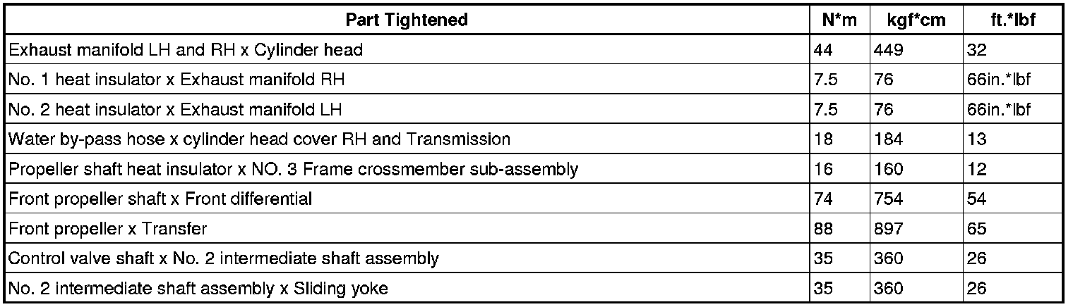 SERVICE SPECIFICATIONS: 2UZ-FE EXHAUST: TORQUE SPECIFICATIONS