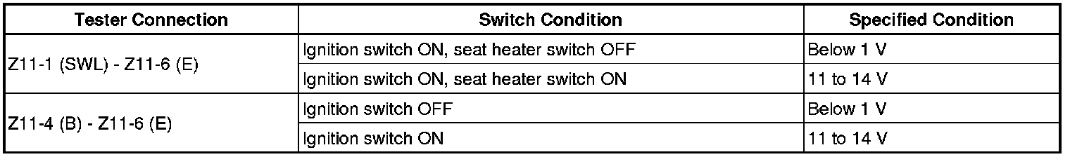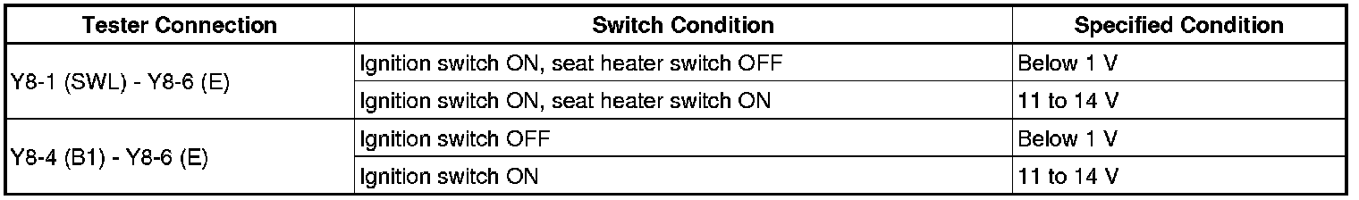 SEAT: SEAT HEATER CONTROL (w/ Seat Heater System): ON-VEHICLE INSPECTION
