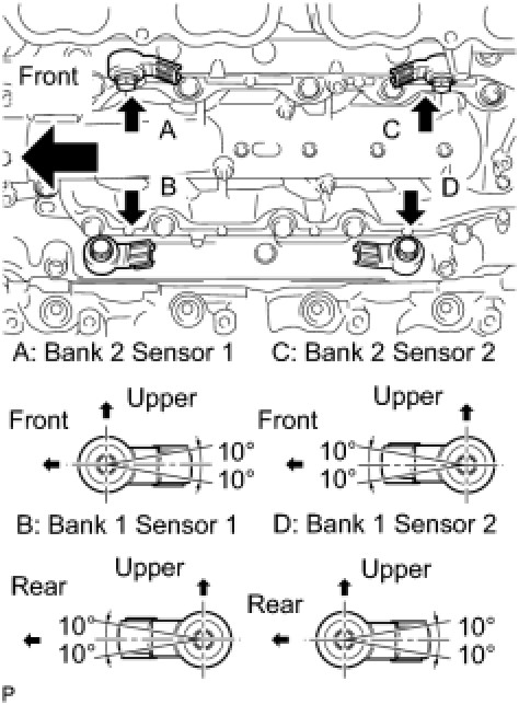 (a) Install the 4 sensors with the 4 bolts so that the sensors are angled as shown in the illustration.