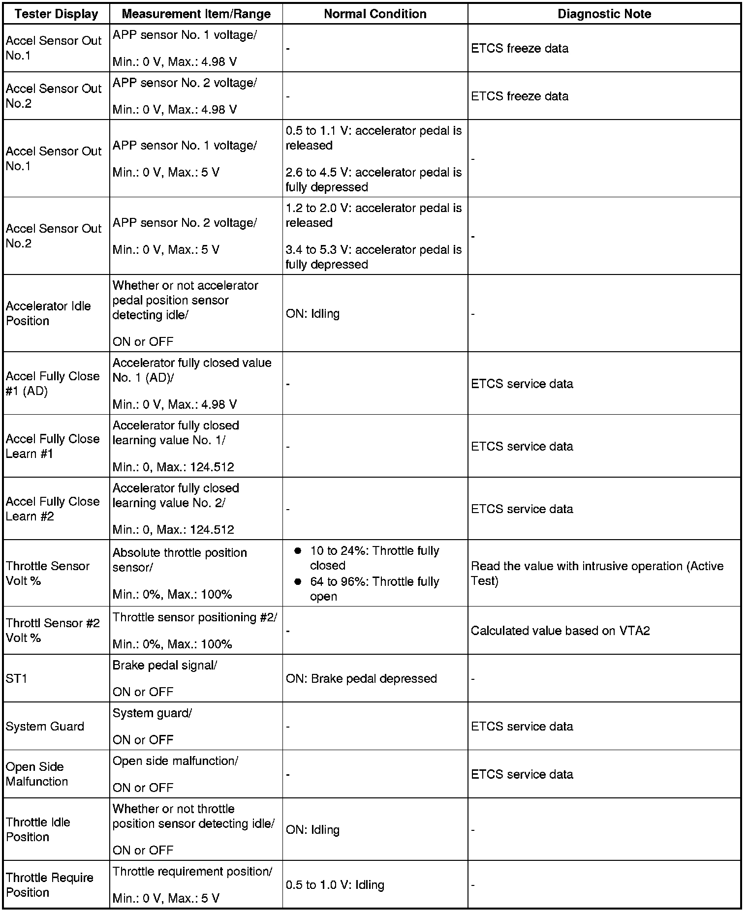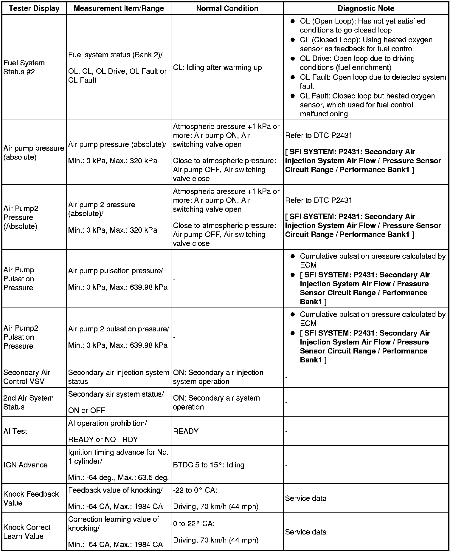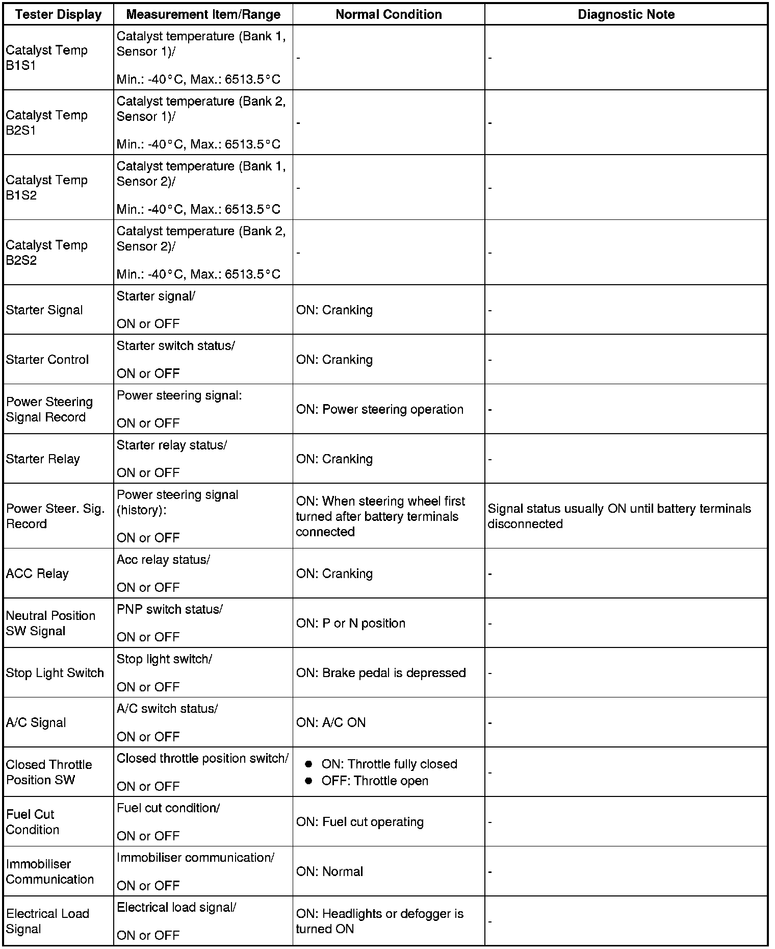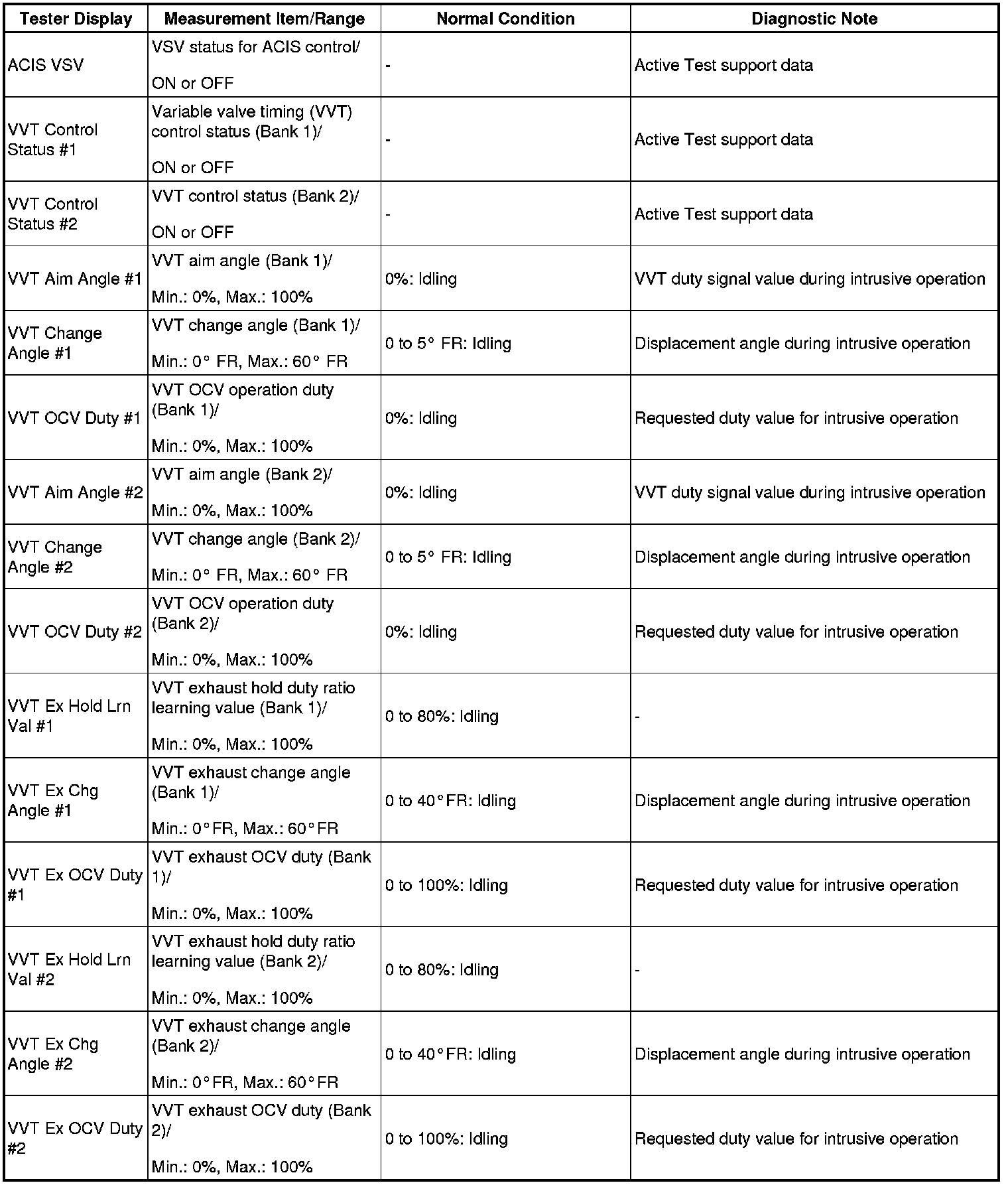 HINT: Using the Techstream to read the Data List allows the values or states of switches, sensors, actuators and other items to be read without removing any parts. This non-intrusive inspection can be very useful because intermittent conditions or signals may be discovered before parts or wiring is disturbed. Reading the Data List information early in troubleshooting is one way to save diagnostic time.