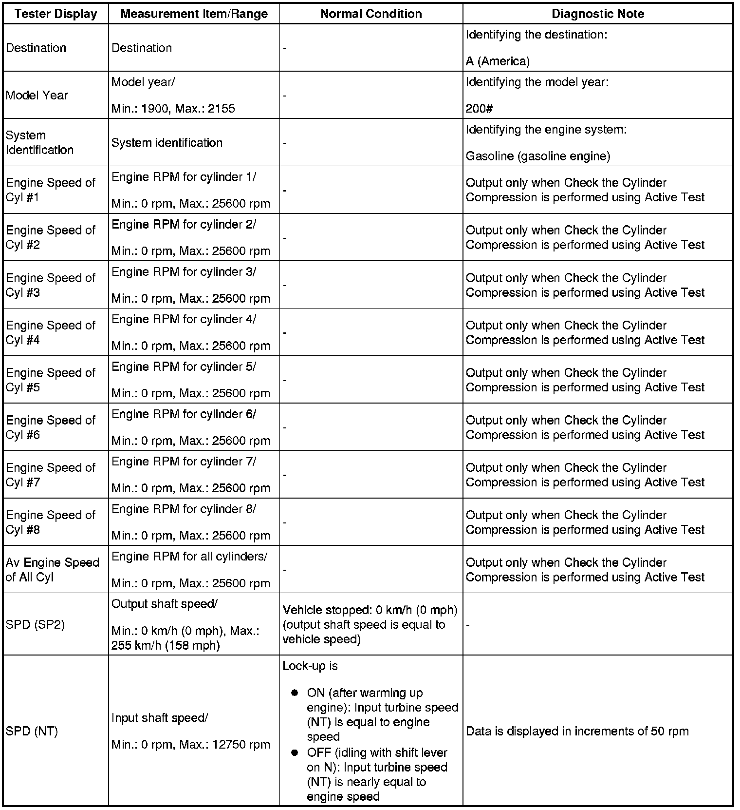 HINT: At first, the Techstream display will show each cylinder's engine rpm measurement to be extremely high. After approximately 10 seconds of engine cranking, each cylinder's engine rpm measurement will change to the actual engine rpm.