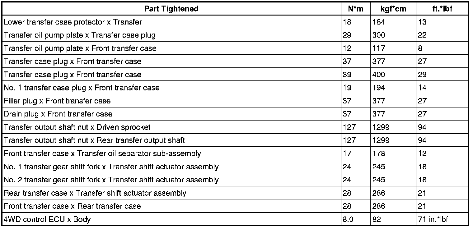 SERVICE SPECIFICATIONS: JF1A TRANSFER: TORQUE SPECIFICATIONS