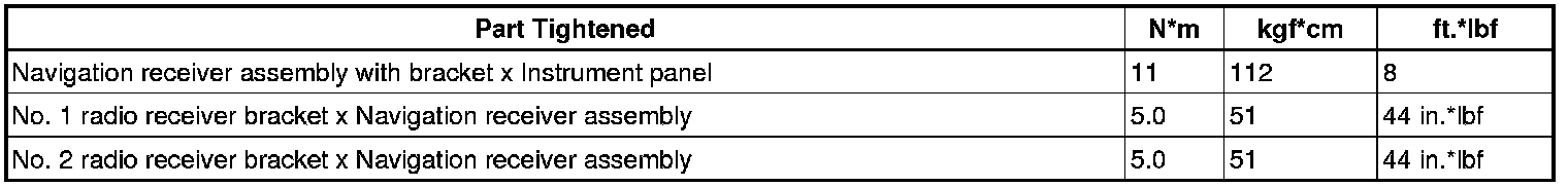SPECIFICATIONS: NAVIGATION / MULTI INFO DISPLAY: TORQUE SPECIFICATIONS