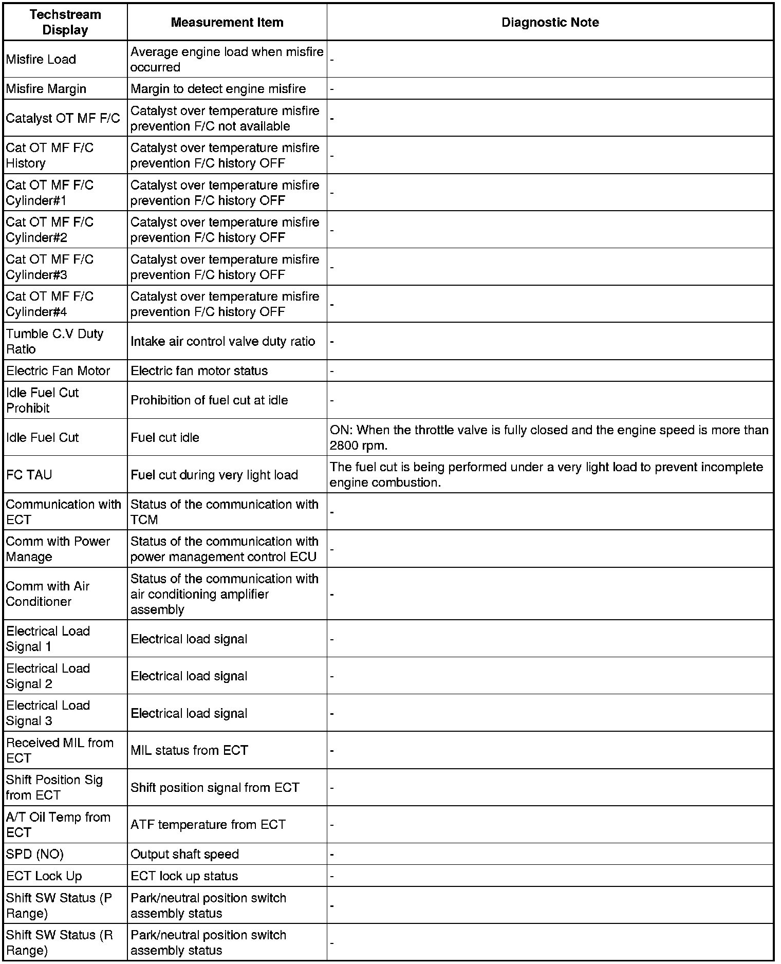 - The ECM records engine conditions in the form of freeze frame data every 0.5 seconds. Using the Techstream, 5 separate sets of freeze frame data, including the data values at the time when the DTC is stored, can be checked.