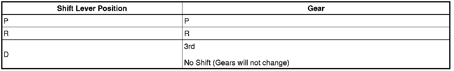(b) Drive with the TCM connector disconnected. Move the shift lever to each position to check whether the gear changes as shown in the table below.