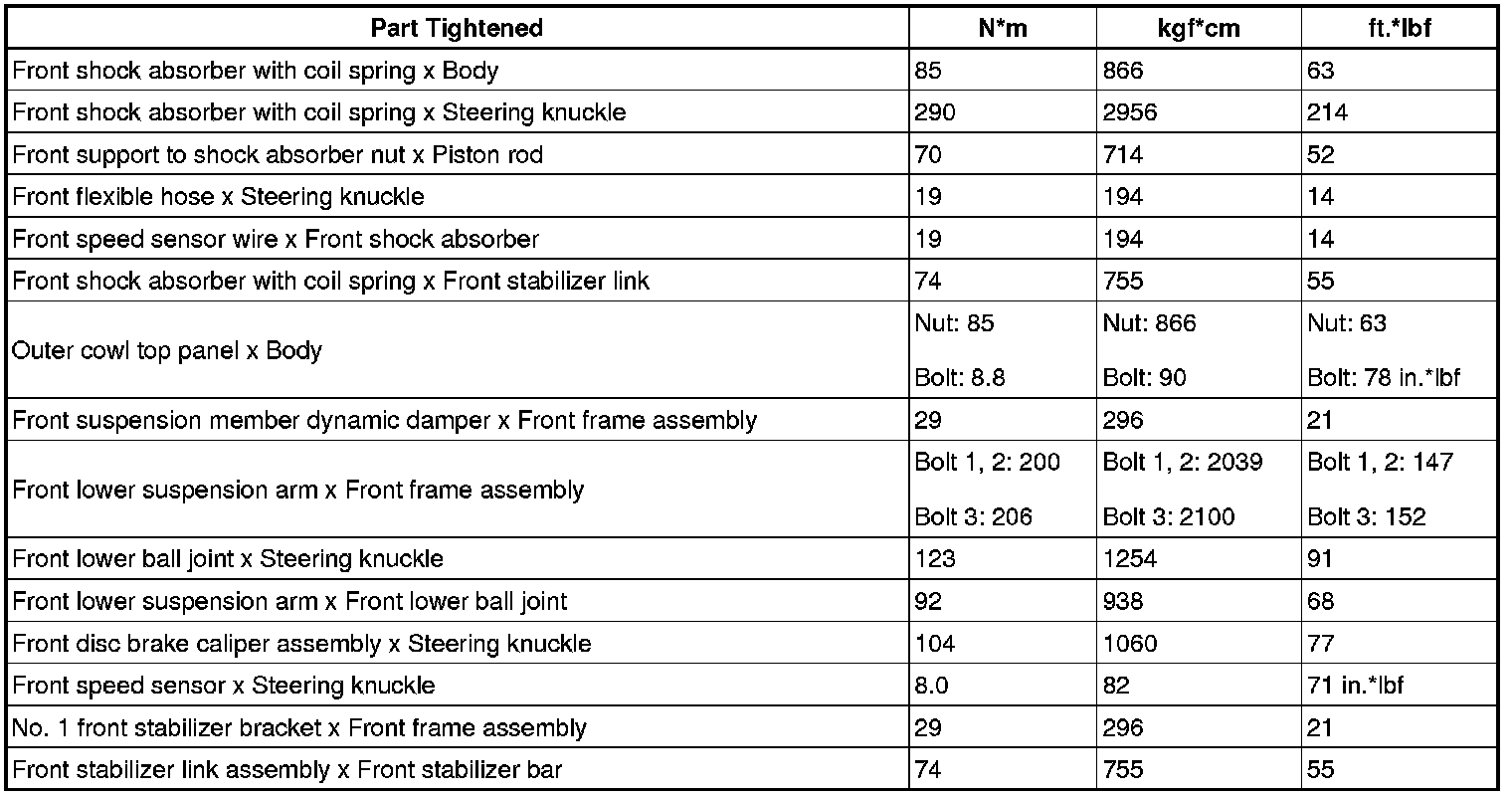 : TORQUE SPECIFICATIONS