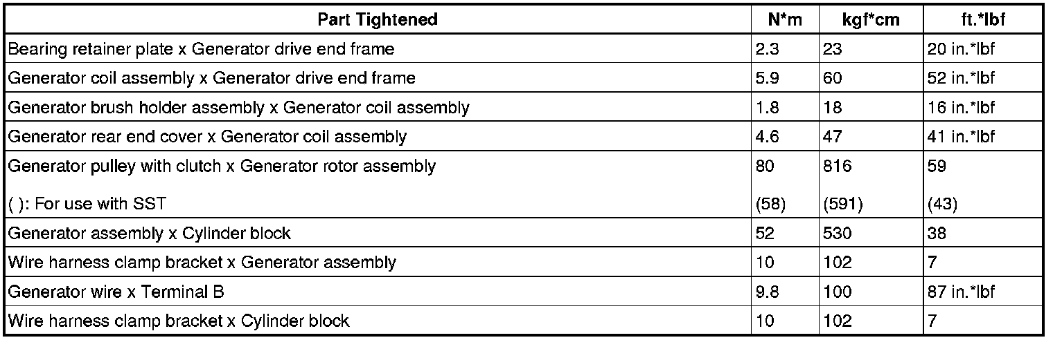 SPECIFICATIONS: 1AR-FE BATTERY / CHARGING: TORQUE SPECIFICATIONS