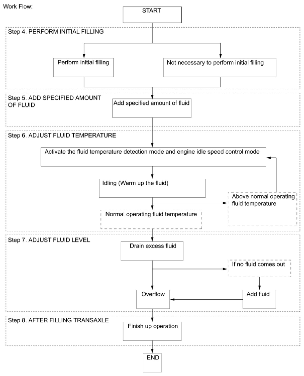 NOTICE: After performing any of the following operations, it is not necessary to perform the initial filling procedure. Proceed to the Add Specified Amount of Fluid procedure.
