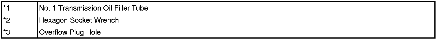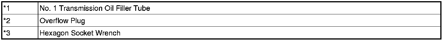 NOTICE: If only a small amount of fluid (approximately 1 cc) comes out of the overflow plug hole, then only fluid remaining in the No. 1 transmission oil filler tube has come out. This condition is not considered as overflow, so it is necessary to add fluid.