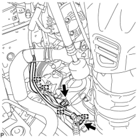 (e) Using pliers, grip the claws of the clip and slide the clip to install the No. 2 radiator hose.