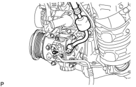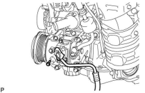(d) Install the suction hose sub-assembly onto the compressor assembly with pulley with the bolt.