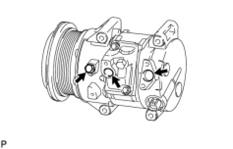 (b) Apply sufficient compressor oil to a new O-ring and the fitting surface of the compressor assembly with pulley.