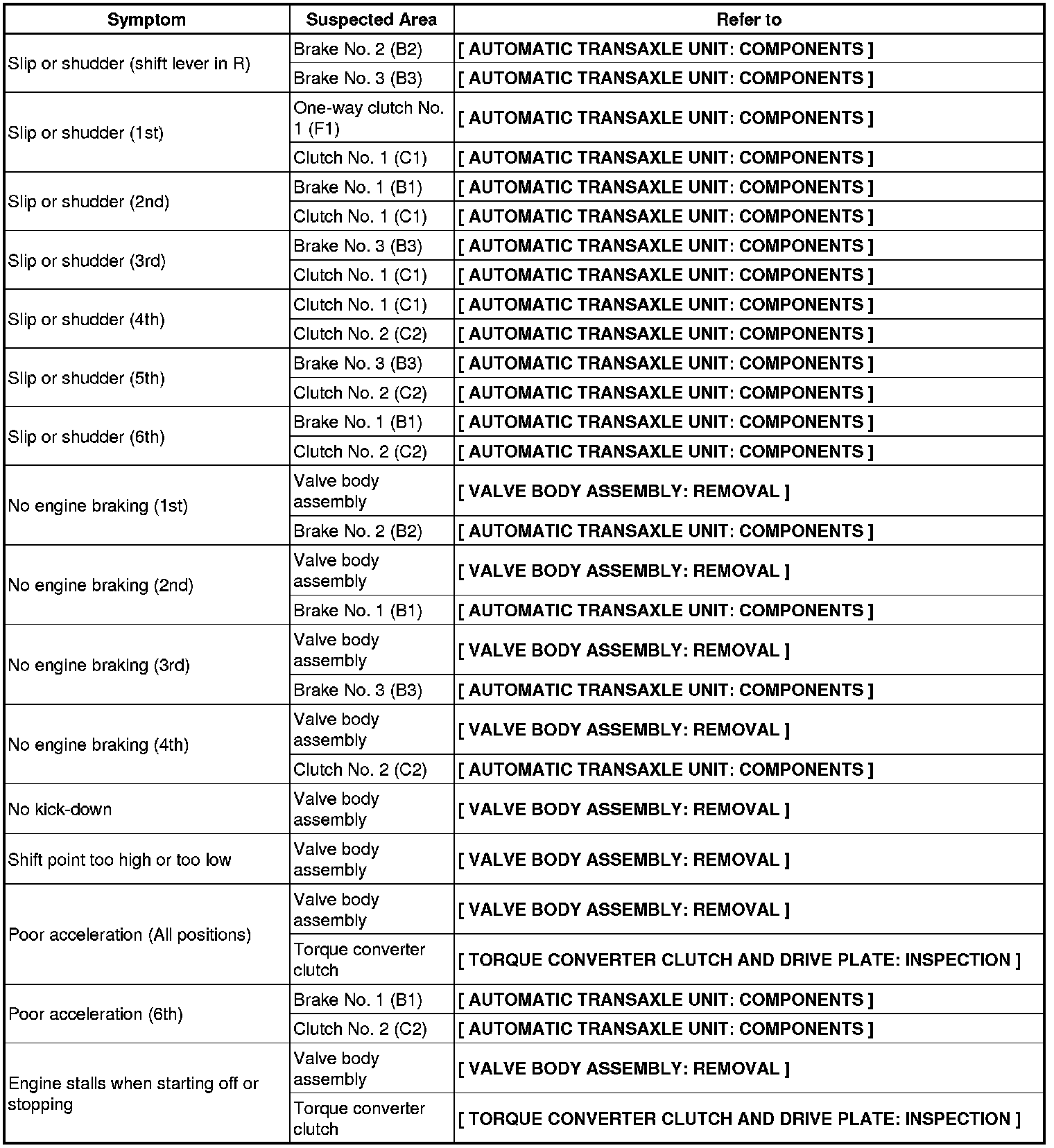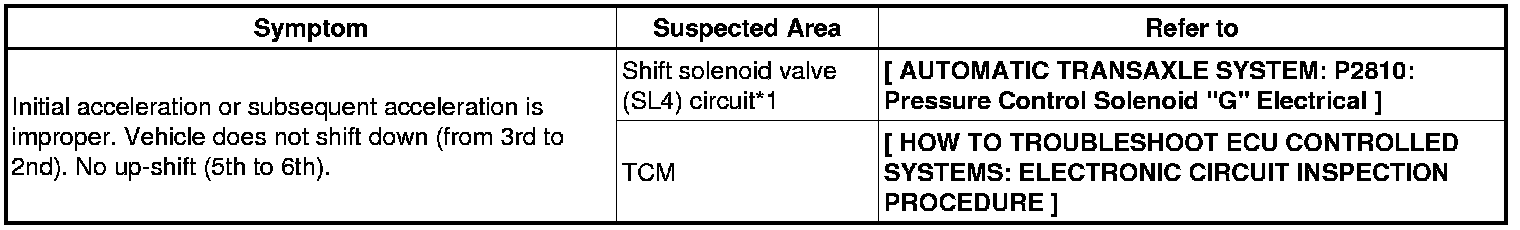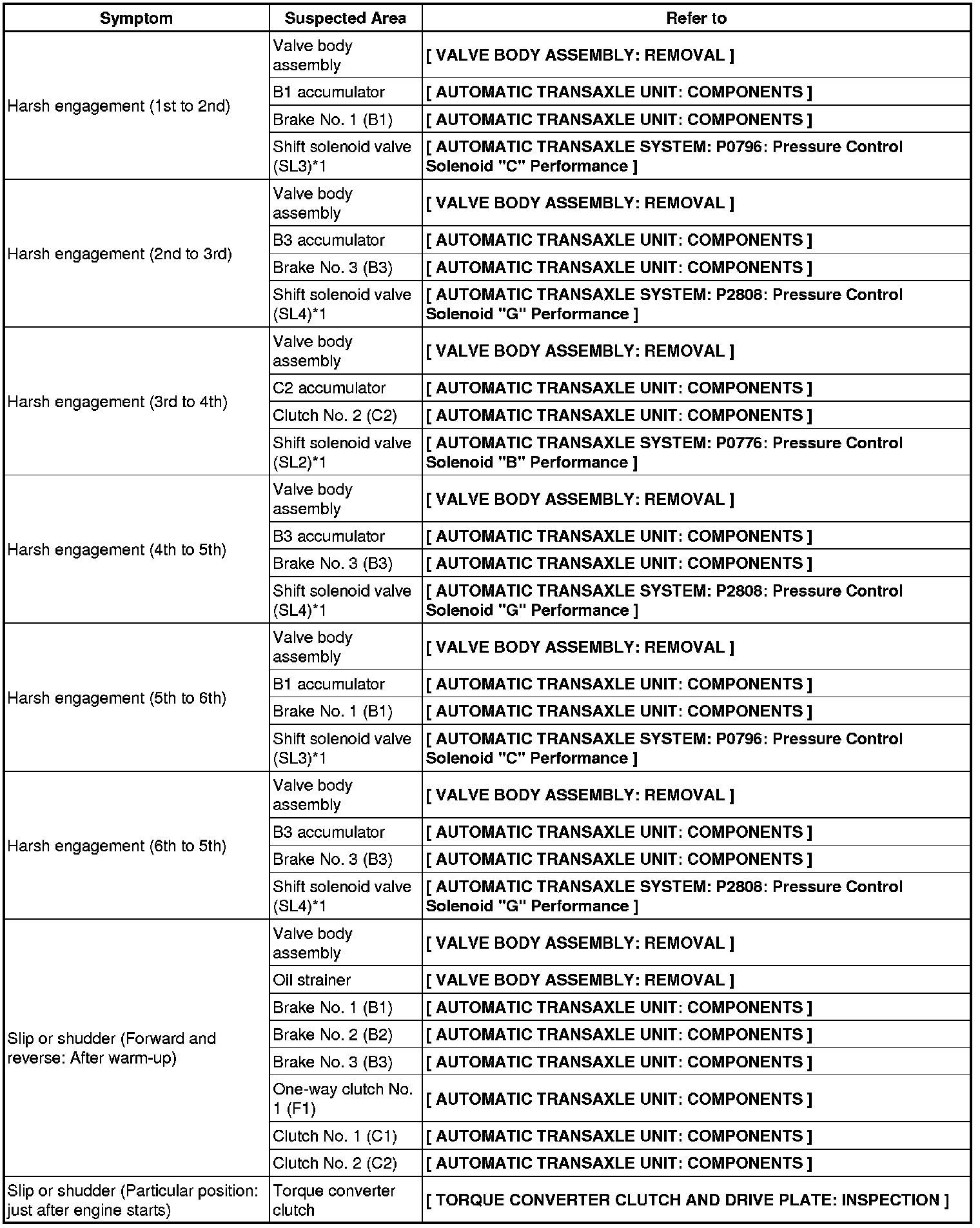U760E AUTOMATIC TRANSMISSION / TRANSAXLE: AUTOMATIC TRANSAXLE SYSTEM: PROBLEM SYMPTOMS TABLE