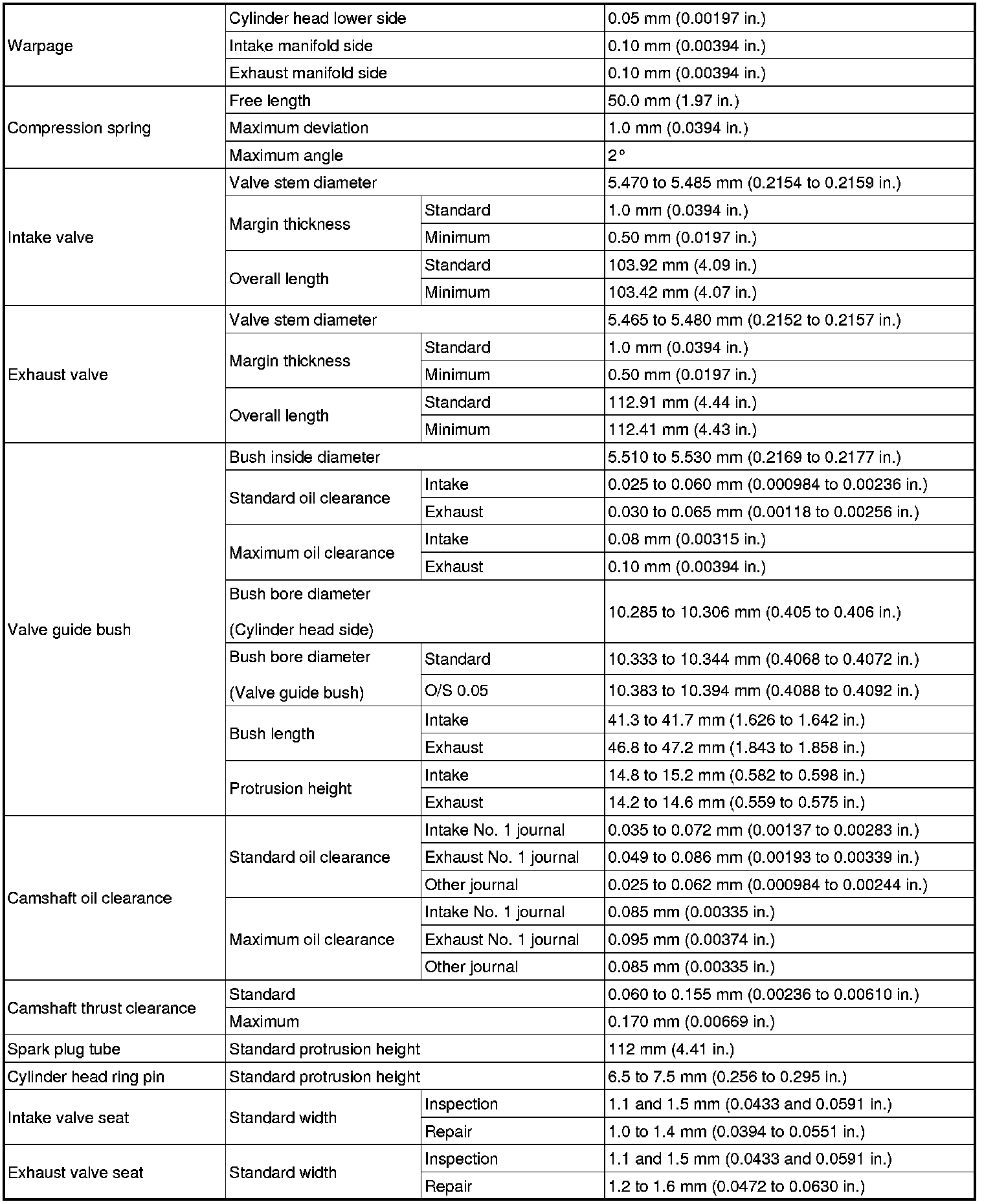 SPECIFICATIONS: 1AR-FE ENGINE MECHANICAL: SERVICE DATA