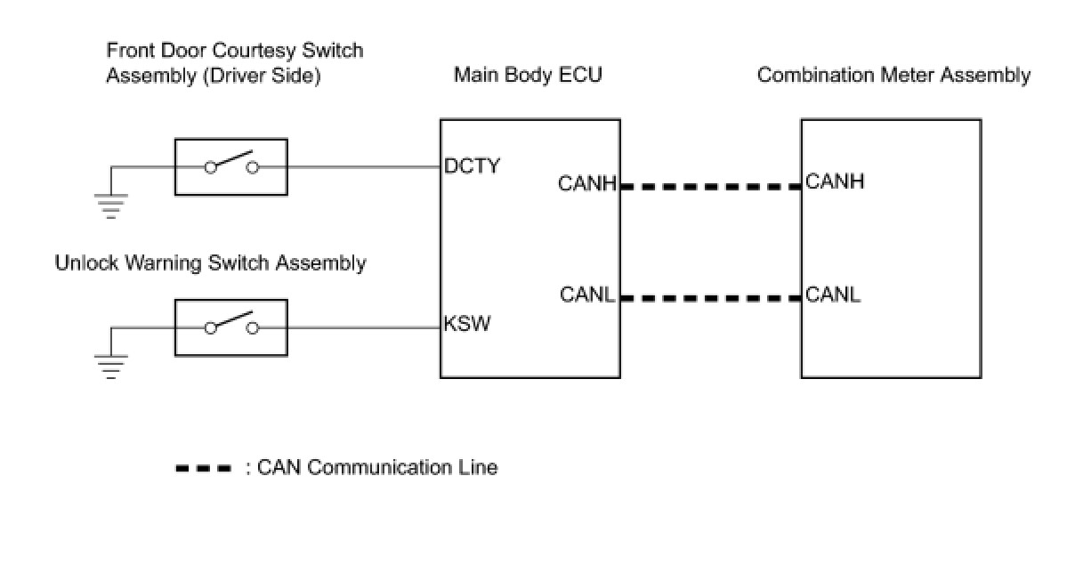 HINT: Since the key reminder warning system has functions that use CAN communication, firstly confirm that there is no malfunction in the communication system by inspecting the CAN communication functions in accordance with How to Proceed with Troubleshooting. Then, conduct the following troubleshooting procedure.