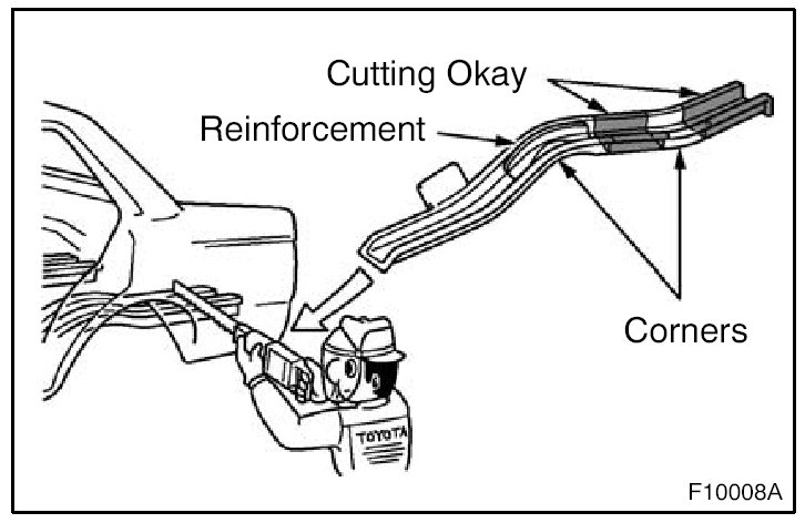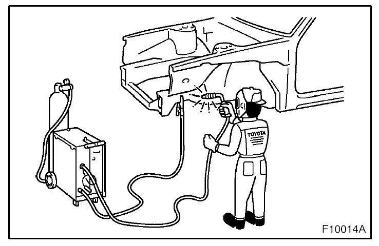 2. Plug welding should be done with a MIG (Metal Inert Gas) welder. Do not gas weld or braze panels at areas other than specified.