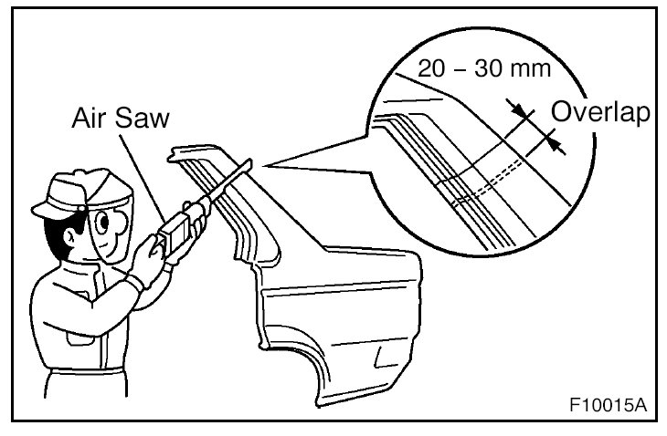 1. For joint areas, rough cut the new parts, leaving 20 - 30 mm (0.79 - 1.18 in.) of overlap.