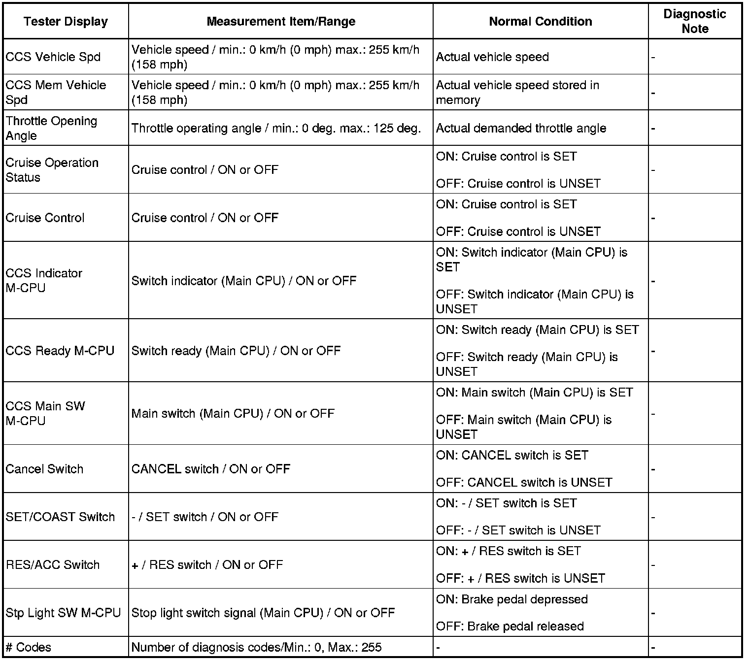 CRUISE CONTROL: CRUISE CONTROL SYSTEM: DATA LIST / ACTIVE TEST