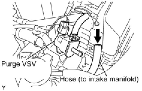 (a) Disconnect the hose (connected to the intake manifold) from the purge VSV.