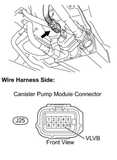 (d) Measure the voltage between VLVB terminal of the canister pump module connector and the body ground.