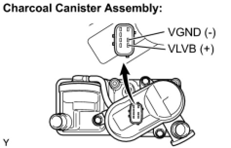 (c) Apply the battery voltage to VLVB and VGND terminals of the canister pump module.
