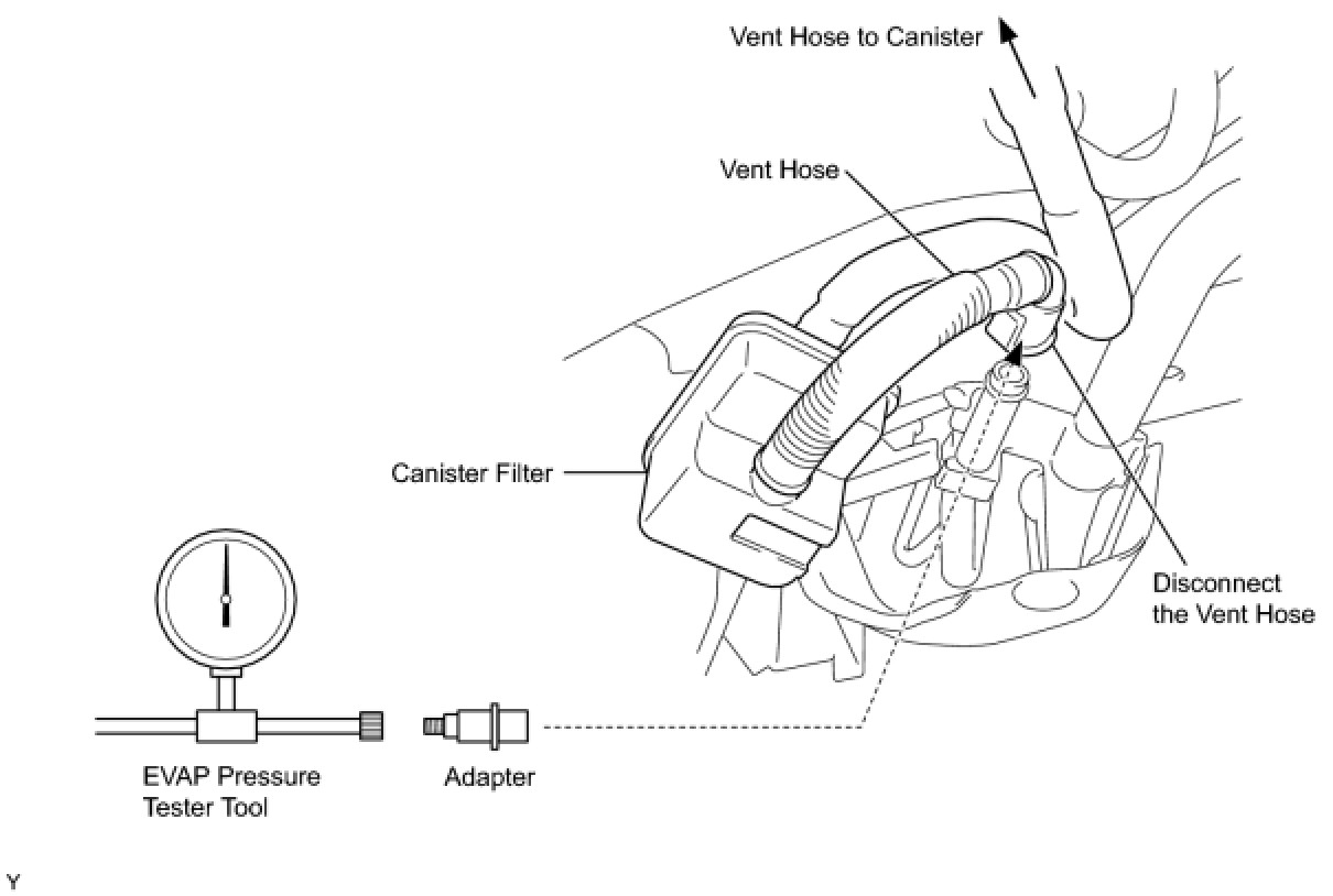 (b) Connect the EVAP pressure tester tool to the vent hose with the adapter.