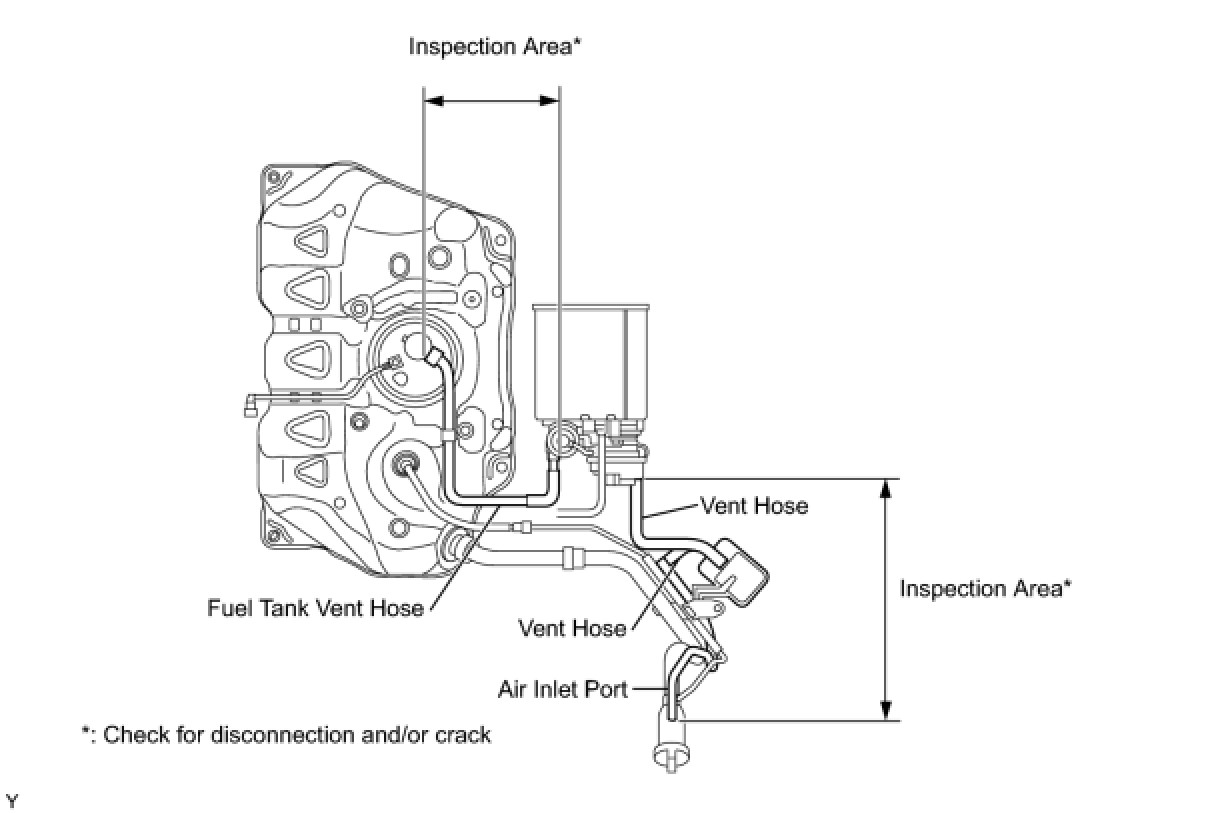 HINT: Disconnect the hose between the canister and the fuel tank from the canister. Block the canister side and conduct an inspection. In this way, the fuel tank can be excluded as an area suspected of causing fuel leaks.