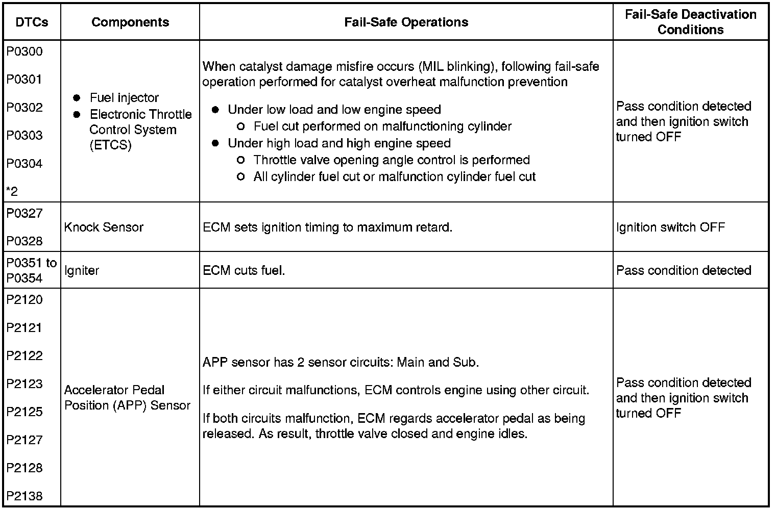 *2: Misfire related fail-safe operations occur when catalyst overheat malfunctions occur.