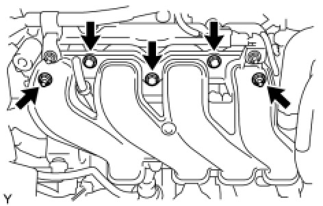 (b) Install the intake manifold with the 3 bolts and 2 nuts.
