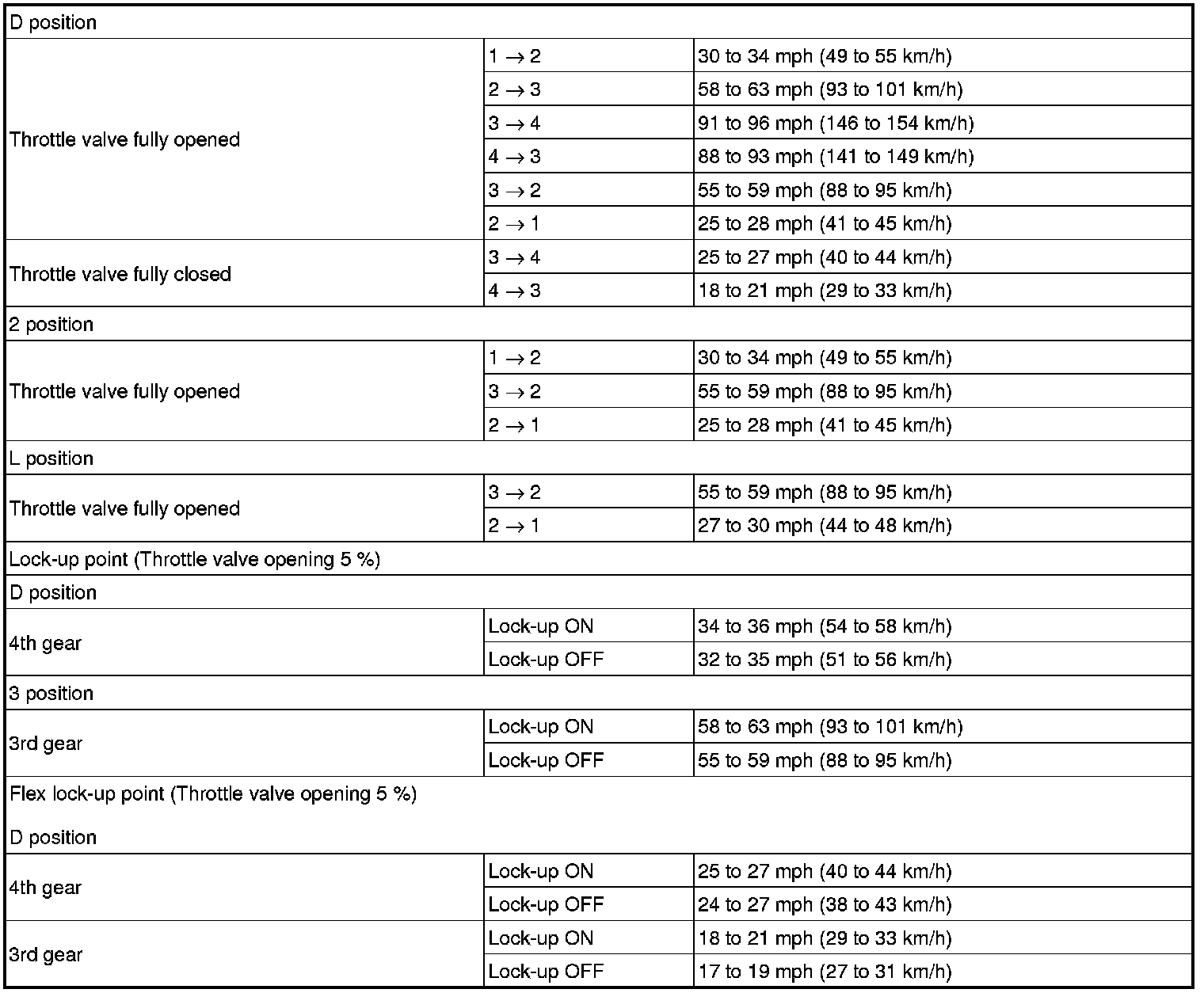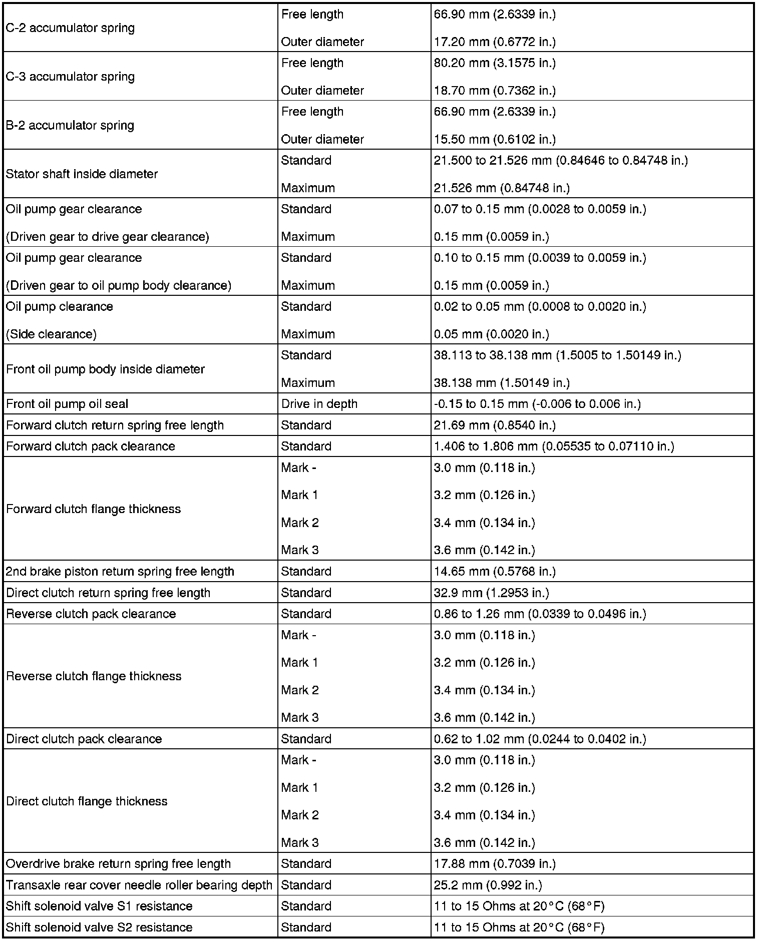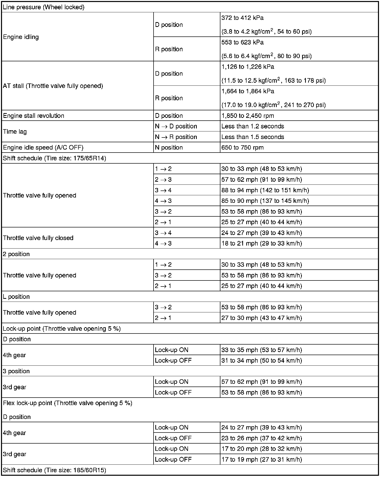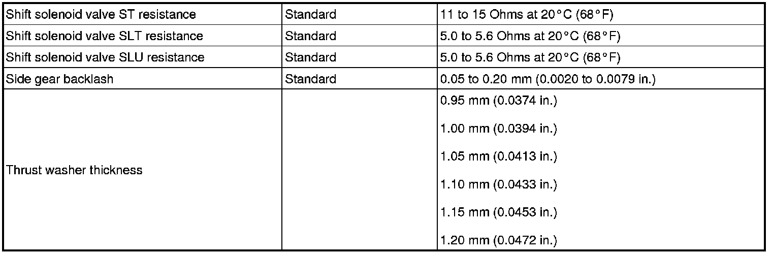 SERVICE SPECIFICATIONS: U340E AUTOMATIC TRANSAXLE: SERVICE DATA