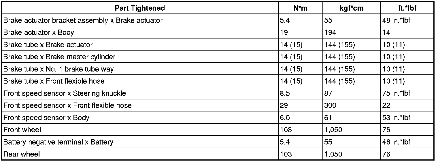 SERVICE SPECIFICATIONS: BRAKE CONTROL: TORQUE SPECIFICATIONS