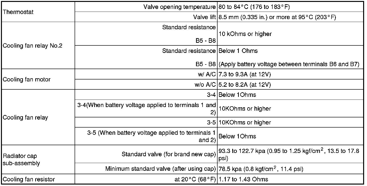 SERVICE SPECIFICATIONS: 1NZ-FE COOLING: SERVICE DATA