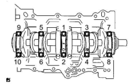 Retighten the bearing cap bolts by 90° in the same sequence as step (*1).