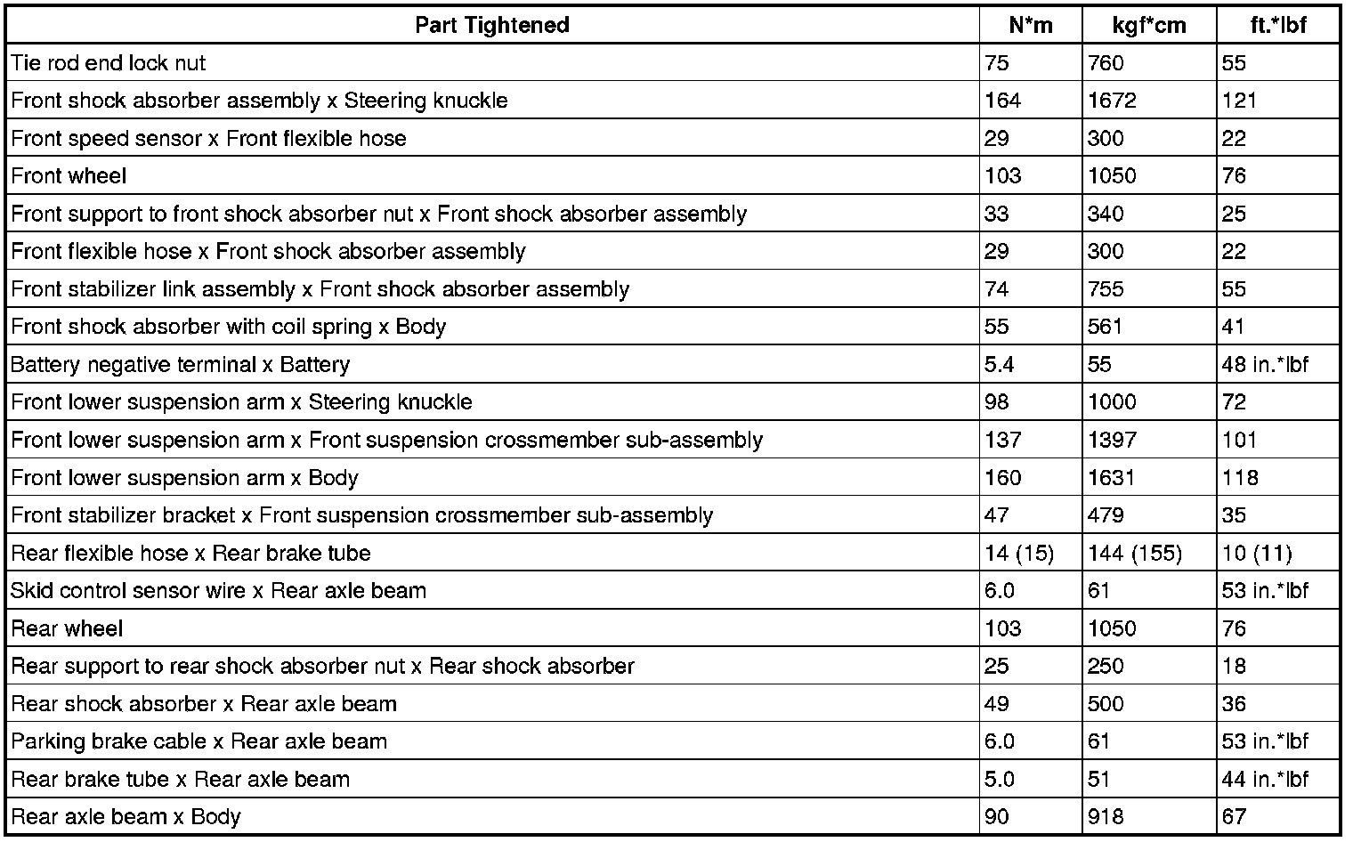 TORQUE SPECIFICATIONS