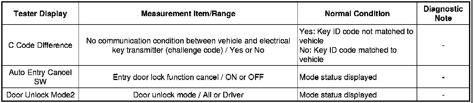 THEFT DETERRENT / KEYLESS ENTRY: SMART KEY SYSTEM (for Entry Function): DATA LIST / ACTIVE TEST