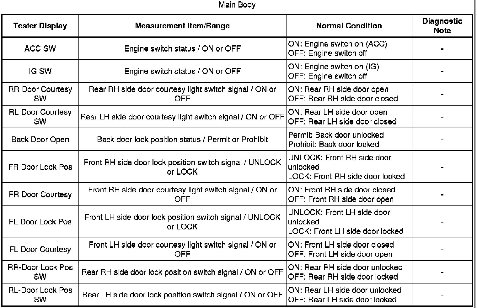 Using the Techstream to read the Data List allows the values or states of switches, sensors, actuators and other items to be read without removing any parts. This non-intrusive inspection can be very useful because intermittent conditions or signals may be discovered before parts or wiring is disturbed. Reading the Data List information early in troubleshooting is one way to save diagnostic time.