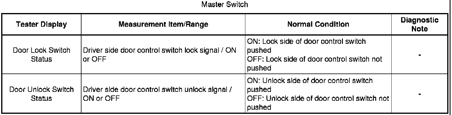 DOOR LOCK: POWER DOOR LOCK CONTROL SYSTEM: DATA LIST / ACTIVE TEST