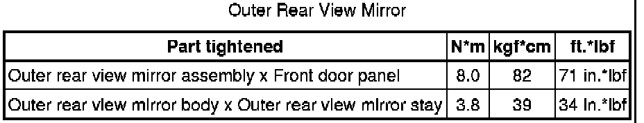 SPECIFICATIONS: MIRROR (EXT): TORQUE SPECIFICATIONS