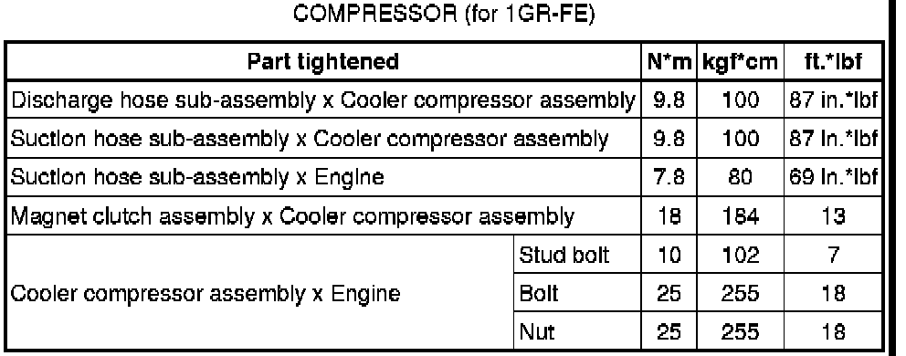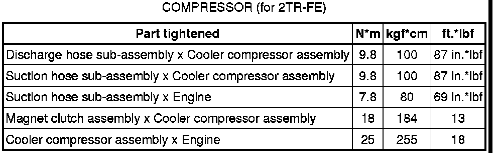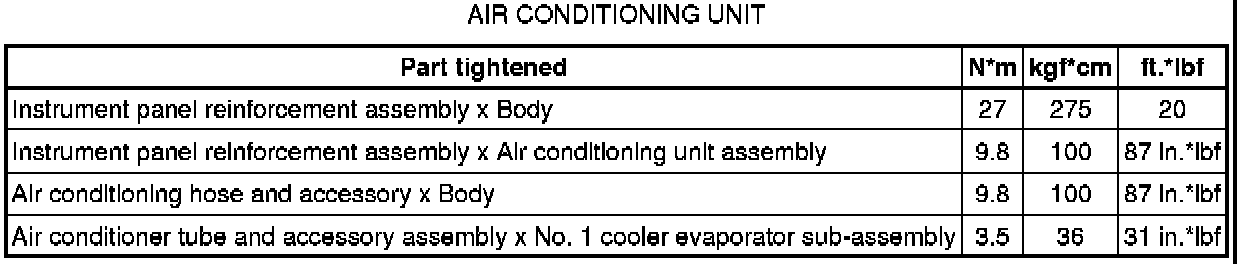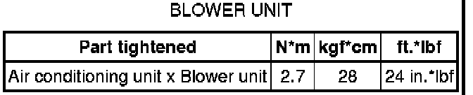 SPECIFICATIONS: HEATING / AIR CONDITIONING: TORQUE SPECIFICATIONS
