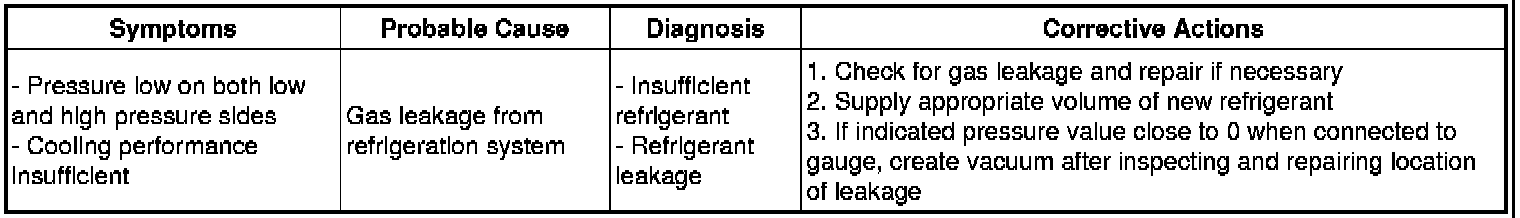 (3) The A/C system does not function effectively due to insufficient refrigerant.