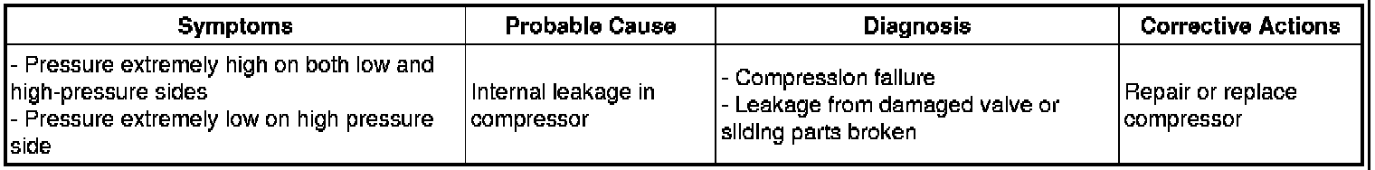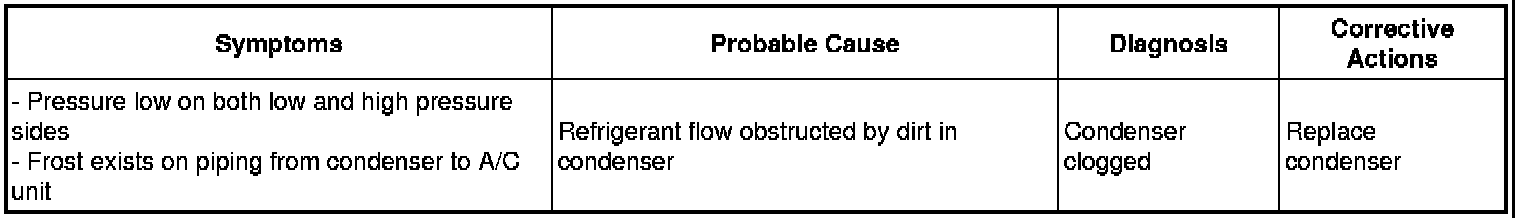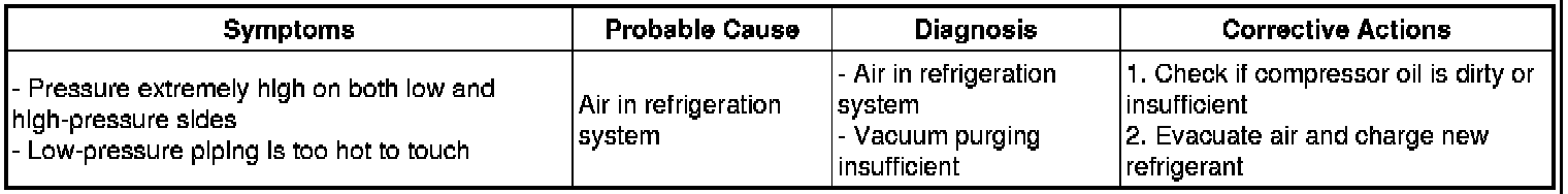 (7) The A/C system does not function due to air in the refrigeration system.