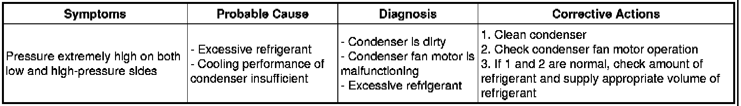 (6) The A/C system does not function effectively due to overcharged refrigerant or insufficient cooling of the condenser.