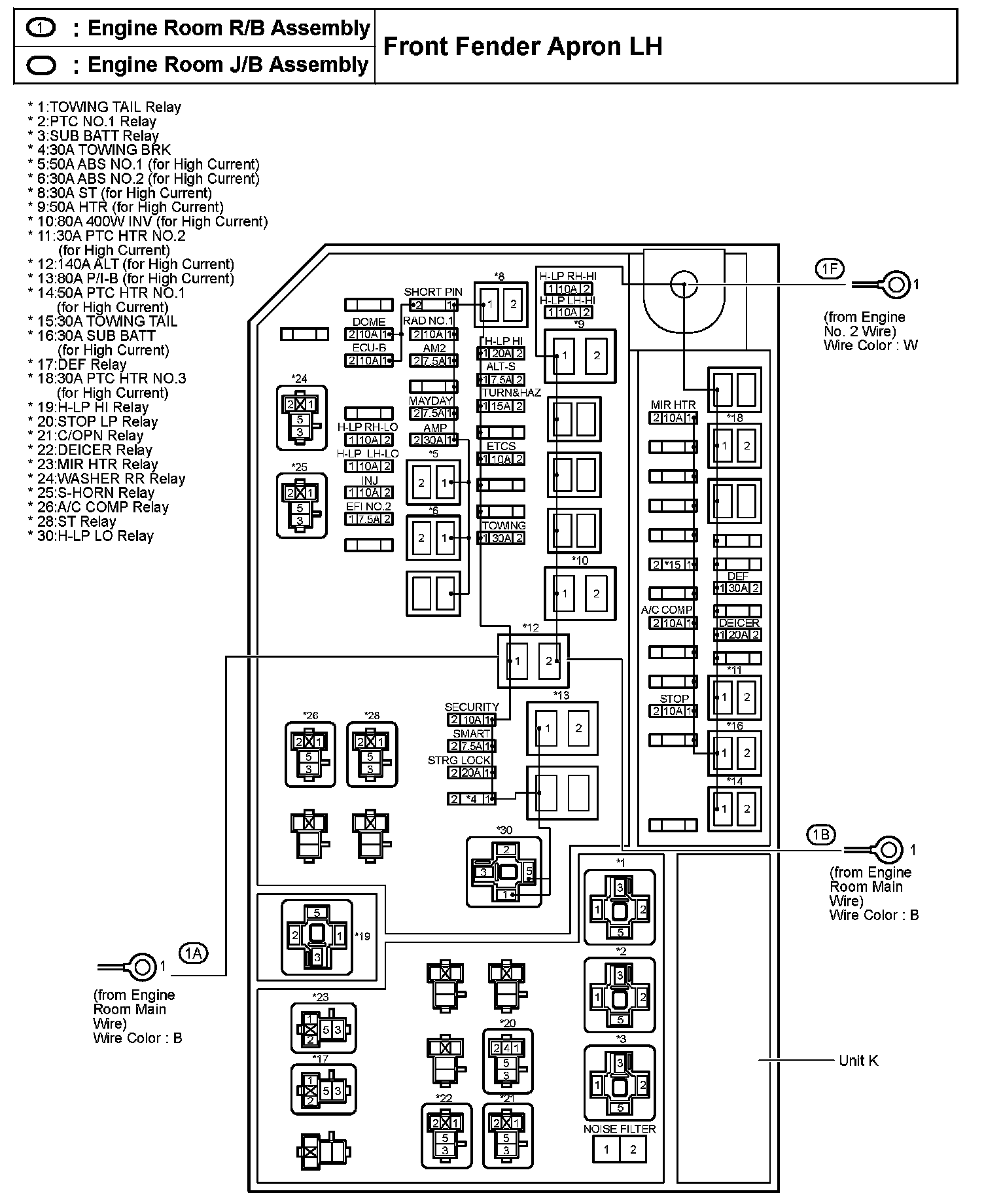 Engine Room R/B, J/B Assembly - Front Fender Apron LH: