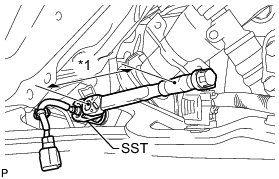 * Use a torque wrench with a fulcrum length of 30 cm (11.8 in.). If using a torque wrench with a length that is not 30 cm (11.8 in.), calculate the torque specification for the torque wrench and SST based on the "without SST" torque specification Service Precautions.