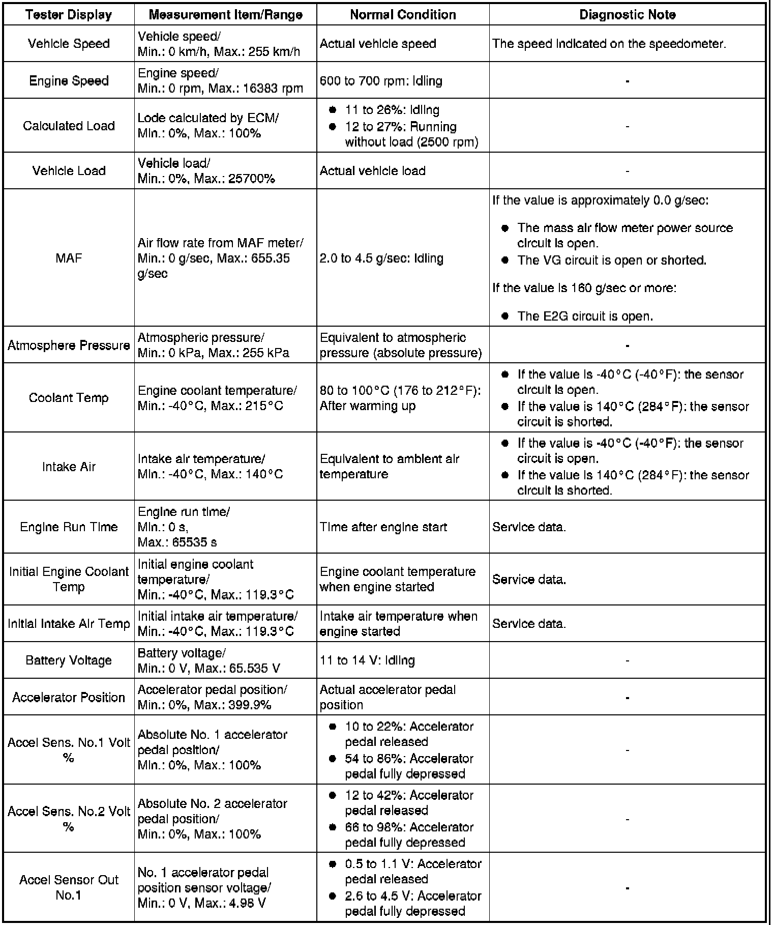 *: This excludes the throttle valve opening percentage due to Idle Speed Control (ISC).