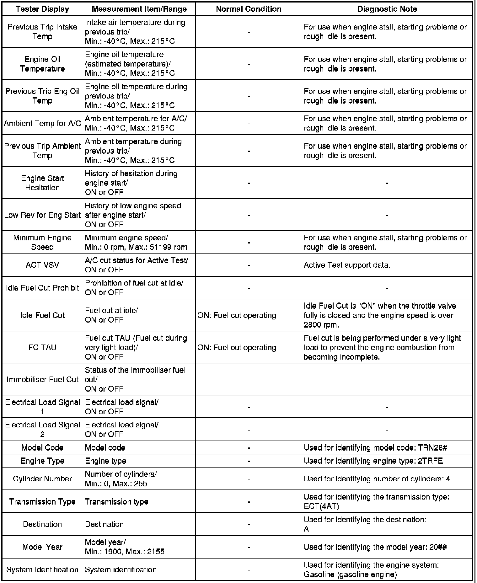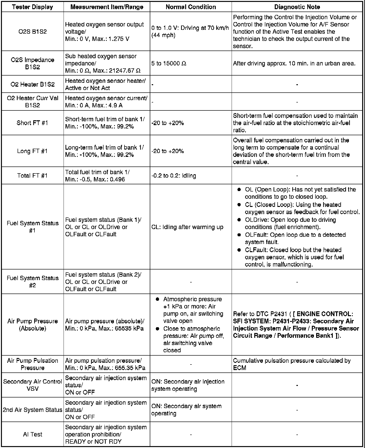 2TR-FE ENGINE CONTROL: SFI SYSTEM: DATA LIST / ACTIVE TEST