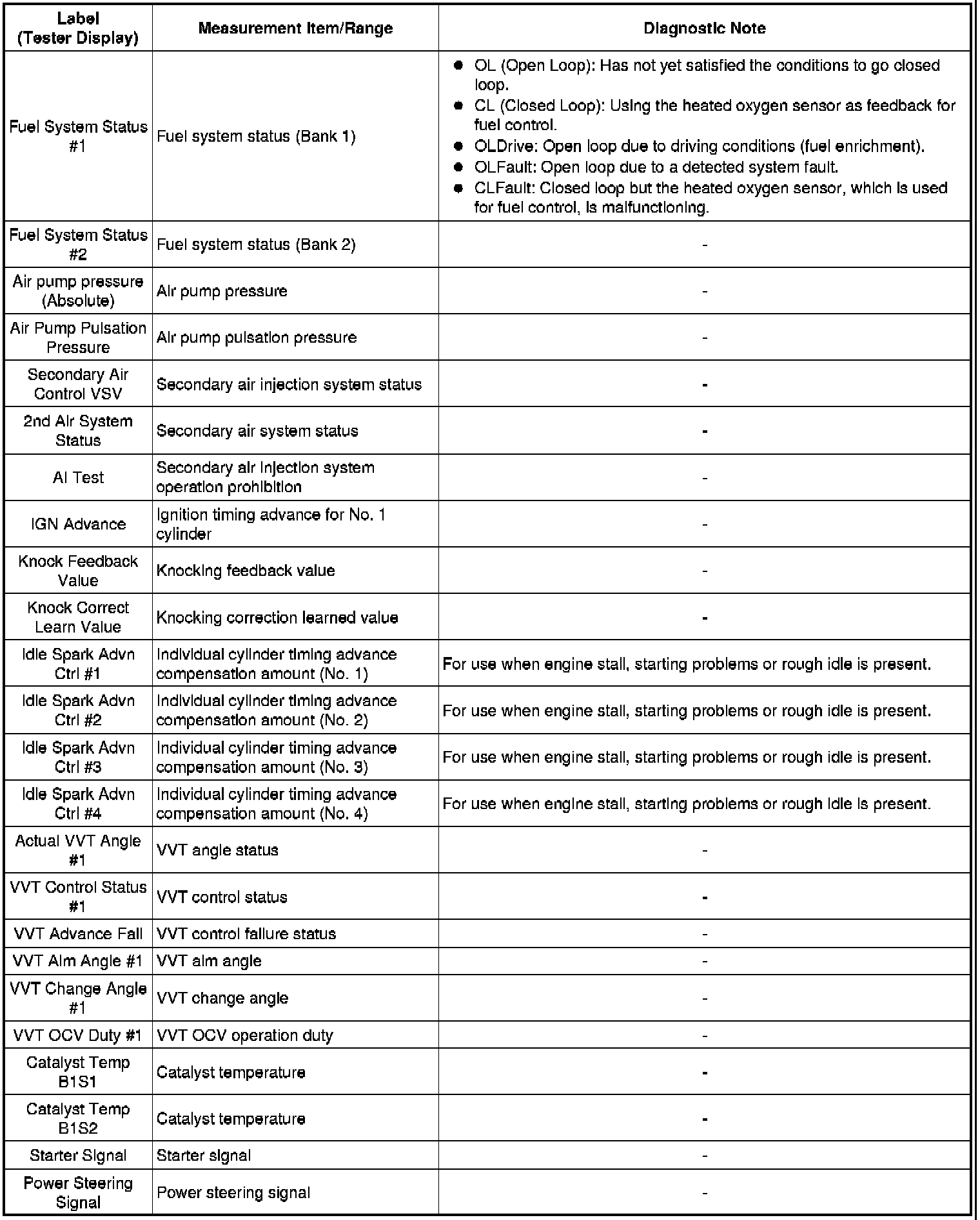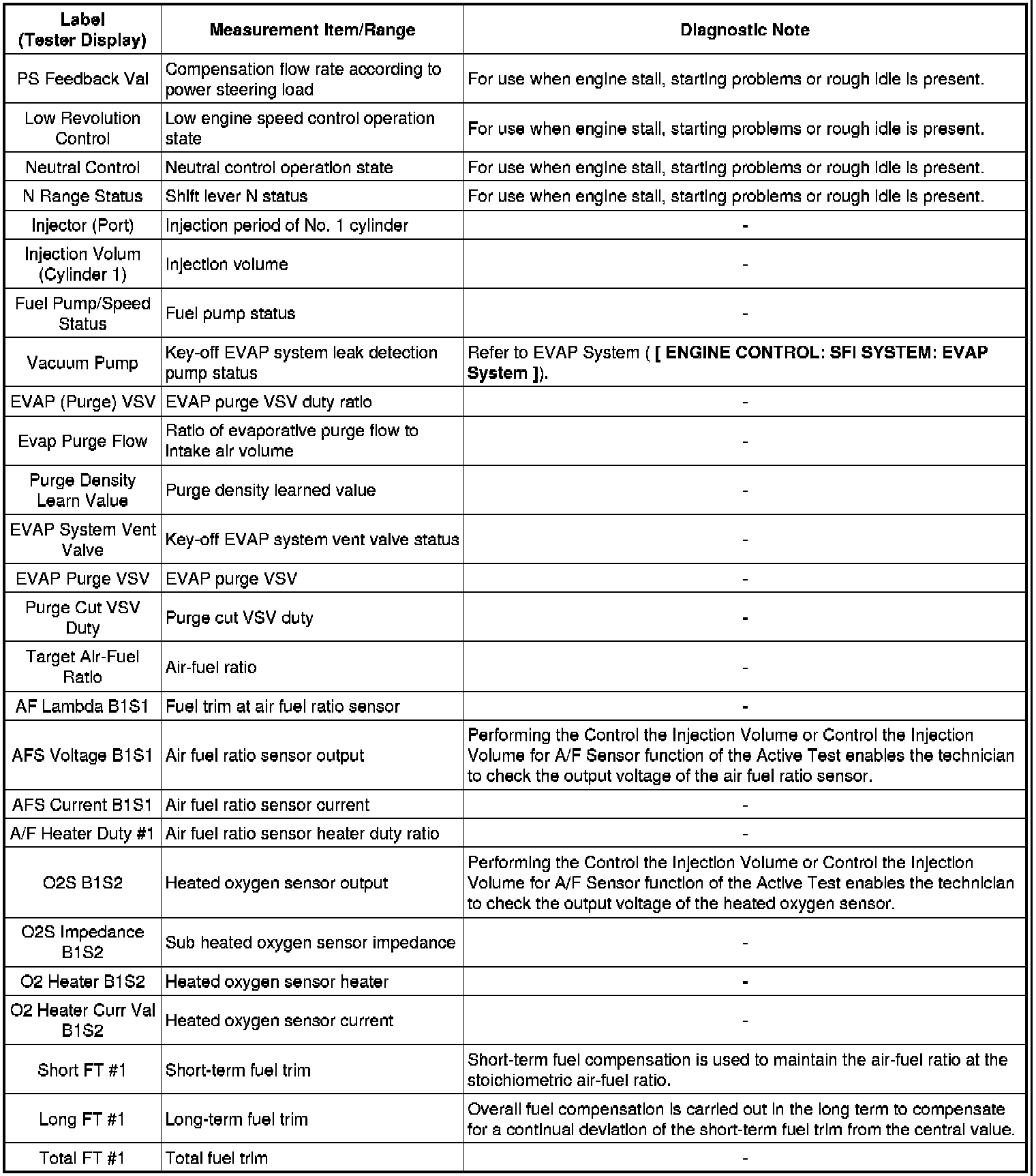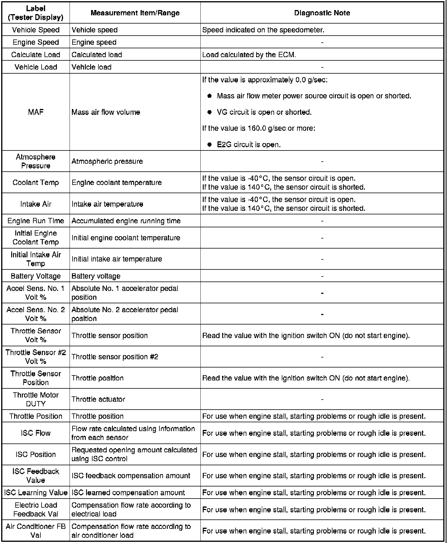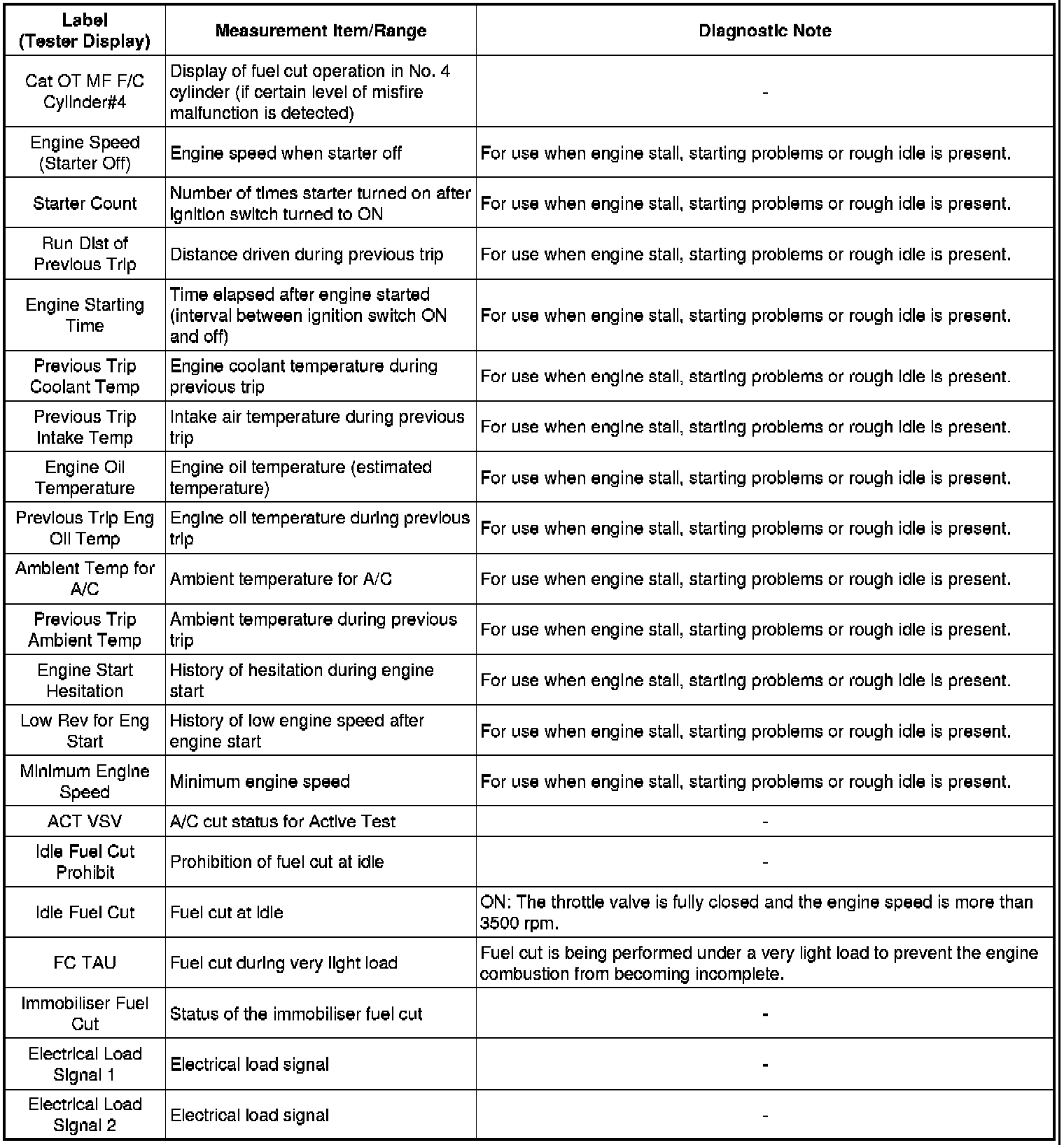 2TR-FE ENGINE CONTROL: SFI SYSTEM: FREEZE FRAME DATA